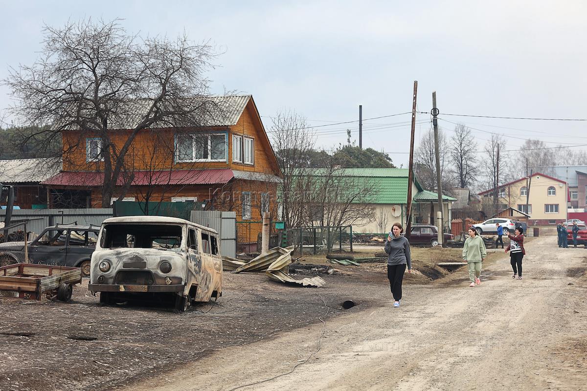 Consequences of a fire in the village of Sosva. Genre photography. Views of the village after the…
