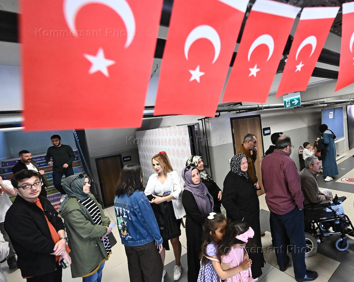 Выборы Президента Турецкой Республики и нового состава парламента. Избиратели на избирательном…