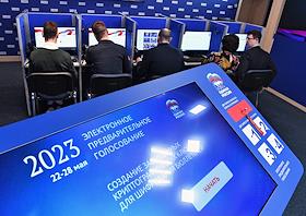 Церемония открытия работы федерального ситуационного центра предварительного голосования партии…