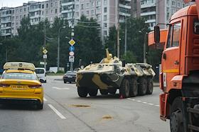 Обстановка в Москве во время режима контртеррористической операции (КТО). Военная техника на съезде…