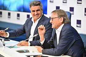 Leader of the New People party Andrei Nechaev (left) and leader of the Party of Growth party Boris…