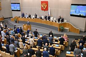 Plenary session of the State Duma of Russia. MPs in the meeting room.