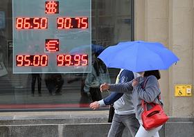 Genre photography. Electronic scoreboard with dollar and euro exchange rates.