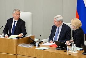 Пленарное заседание Государственной думы (ГД) России. Слева направо: председатель ГД России Вячеслав…
