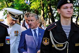 Празднование Дня Военно-морского флота (ВМФ) России в Азове. Праздничное шествие на территории…
