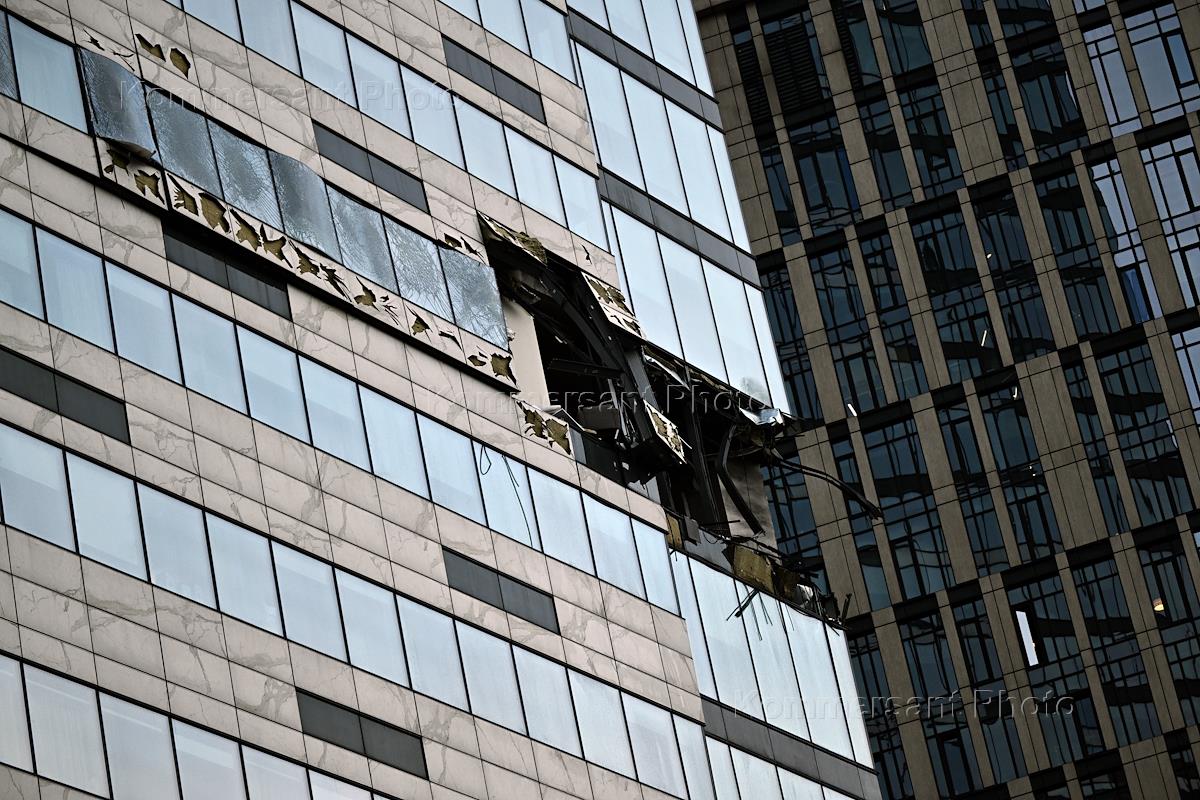 Последствия удара БПЛА в комплексе «Москва-Сити»