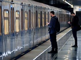 Жанровая фотография. Пассажиры перед поездом на станции Московского метрополитена.