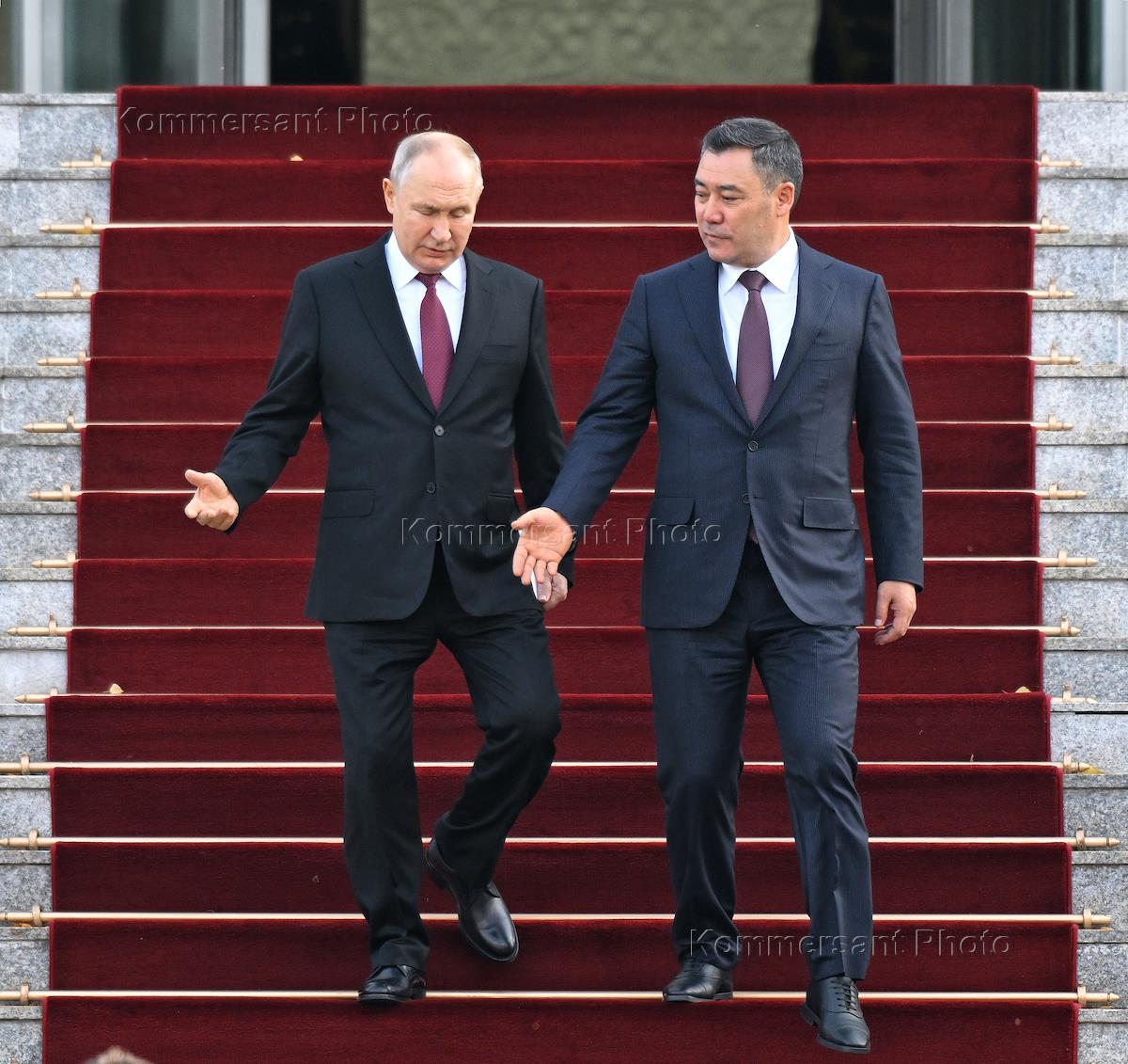 Working trip of Russian President Vladimir Putin to Bishkek. Russian President Vladimir Putin (left)…
