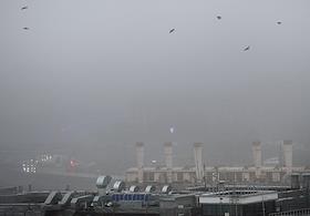 Жанровая фотография. Туман в городе. Жилой комплекс "Алые паруса" на берегу Москвы-реки.