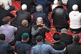 The first service in the Cathedral Mosque of Crimea "Juma Jami". Muslims during worship.