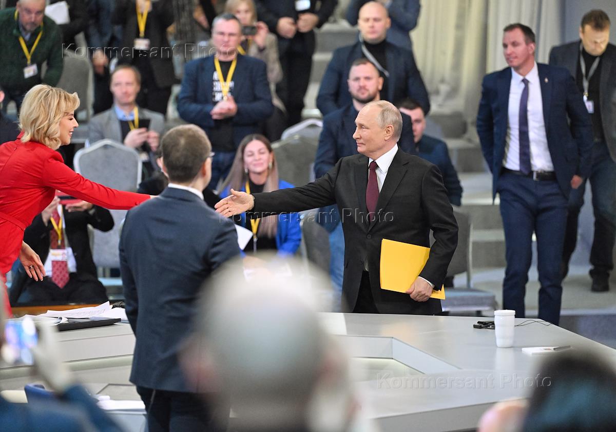 Трансляция программы "Итоги года" с президентом России Владимиром Путиным в Гостином дворе. В 2023…
