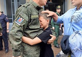 Церемония проводов петербуржцев, заключивших контракт с Министерством обороны (МО) России для…