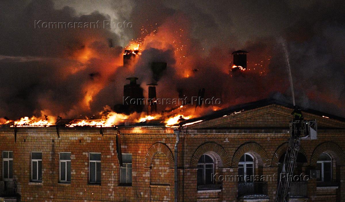 Пожар в шестиэтажном жилом доме на улице Черняховского возле метро "Аэропорт". Площадь пожара кровли…