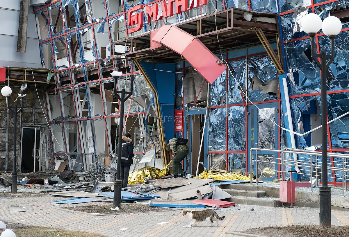 Последствия обстрела Белгорода. Пострадавший из-за ракетной атаки со стороны ВСУ торговый центр на…