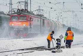Грузовые перевозки на железной дороге. Жанровая фотография. Снегоборьба на железнодорожной станции …