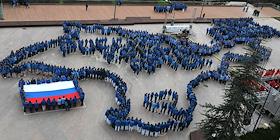 Акция в Международном детском центре "Артек", посвященная 10-летию Крымской весны. Участники акции…