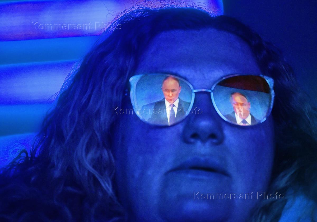 Жанровая фотография. Трансляция ежегодного Послания президента России Владимира Путина Федеральному…