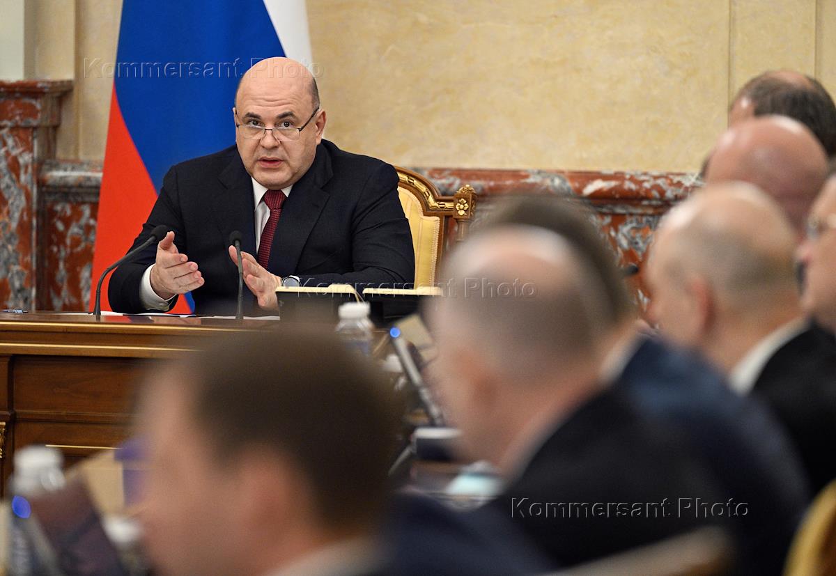 Заседание правительства России. Председатель правительства России Михаил Мишустин во время заседания.