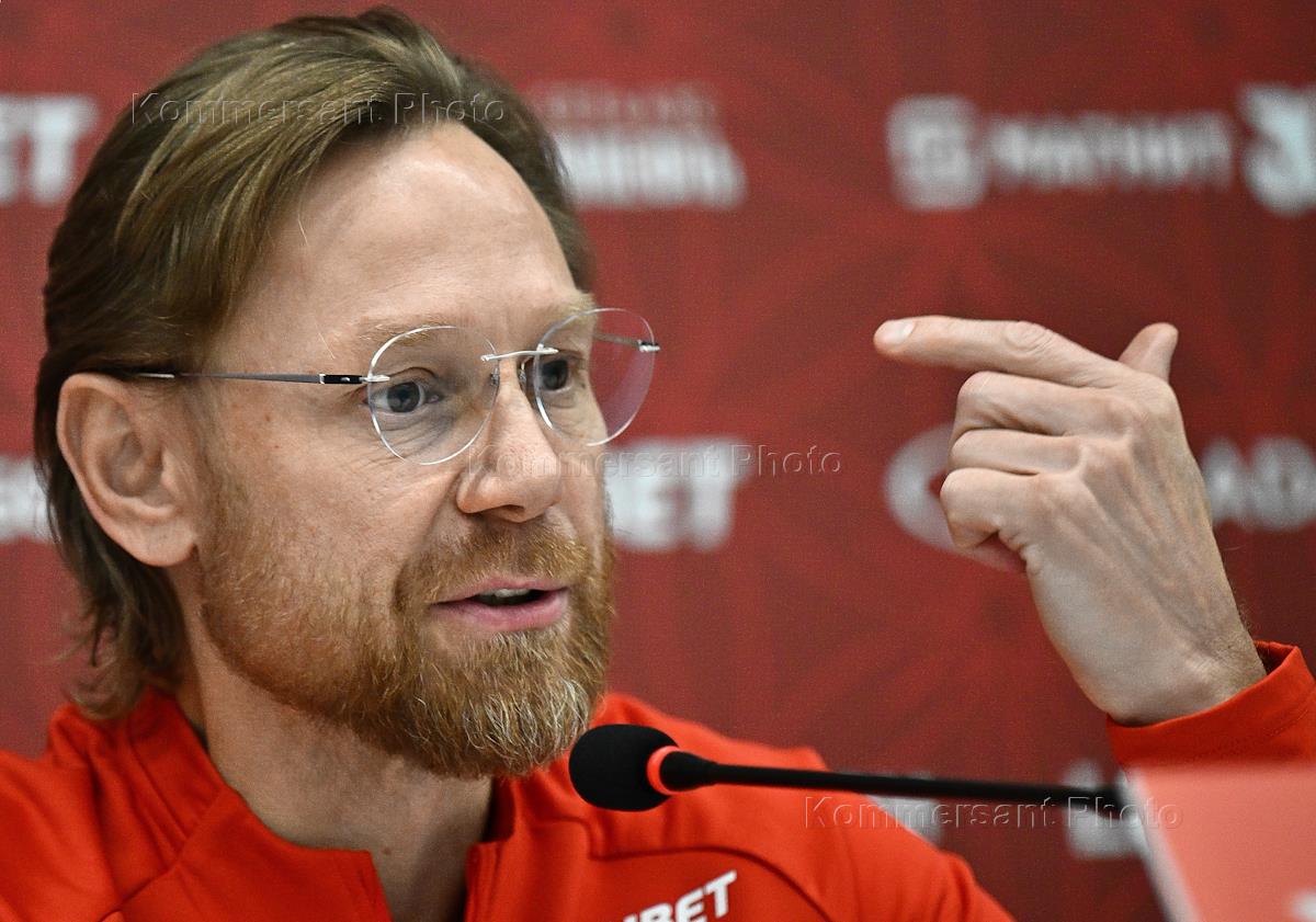 Пресс-конференция главного тренера сборной России Валерия Карпина перед товарищеским матчем между…
