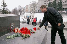 Акция памяти жертв теракта в концертном зале "Крокус Сити Холл" в Нижнем Новгороде. Возложение…