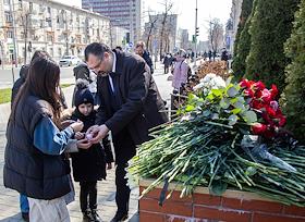 Акция памяти жертв теракта в подмосковном концертном зале "Крокус Сити Холл" в Кишиневе. Возложение…