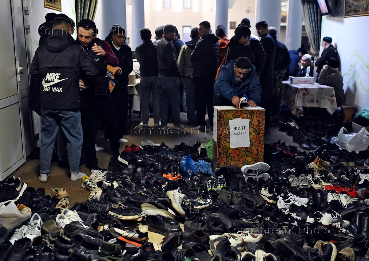 Праздничные мероприятия в день Ураза Байрам в Московской Соборной мечети. Верующие во время…