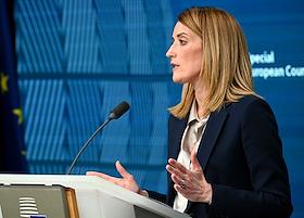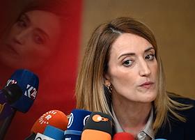 Саммит Европейского Совета (ЕС) в Брюсселе. Президент Европейского парламента Роберта Метсола во…