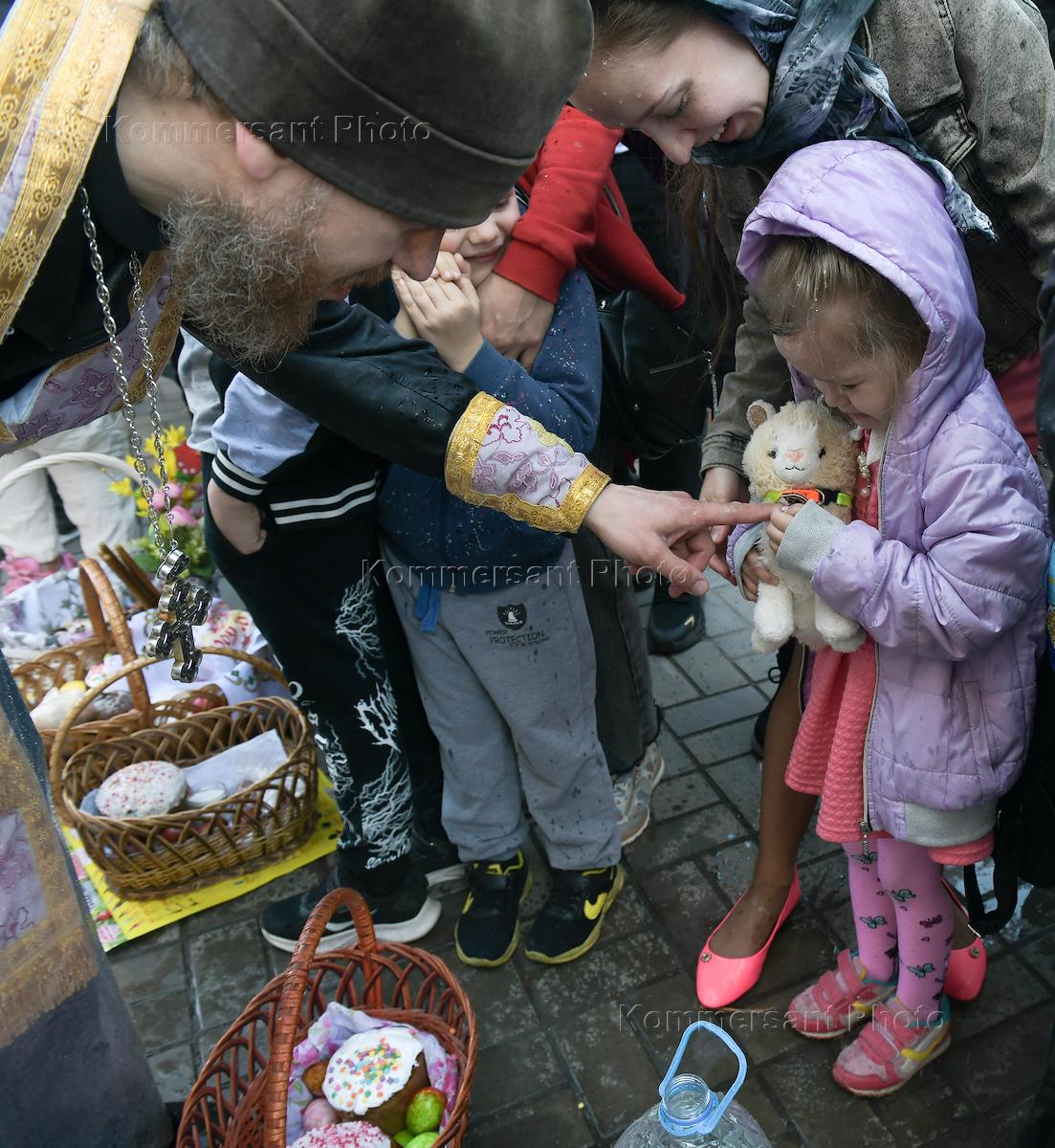 Праздничное Пасхальное богослужение в храме Святого Иоанна Предтечи. Верующие во время пасхальной…