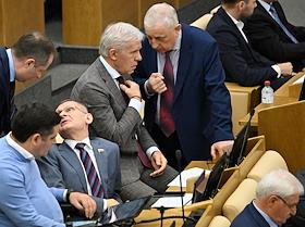 Plenary meeting of the State Duma of Russia. From right to left: Chairman of the Russian State Duma…