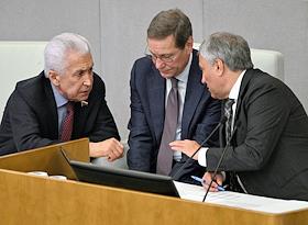Plenary meeting of the State Duma of Russia. From left to right: head of the United Russia faction…