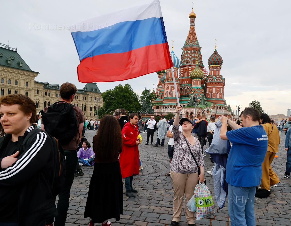 A rally-concert on Red Square in honor of Russia Day. Genre photography. Participants before the…
