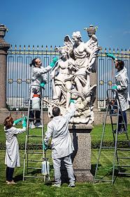 Виды Санкт-Петербурга. Подготовка к открытию Летнего сада. Сотрудники во время очистки скульптуры…