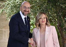 50-й cаммит "Большой семерки" (G7). Премьер-министр Италии Джорджа Мелони (справа) и председатель…