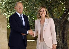 50-й cаммит "Большой семерки" (G7). Премьер-министр Италии Джорджа Мелони (справа) и канцлер…