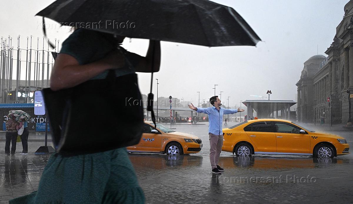 Жанровая фотография. Погода в городе. Люди на улице во время сильного дождя.