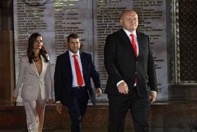 Congress of supporters of the Moldovan political bloc "Pobeda" on Poklonnaya Hill. From left to…