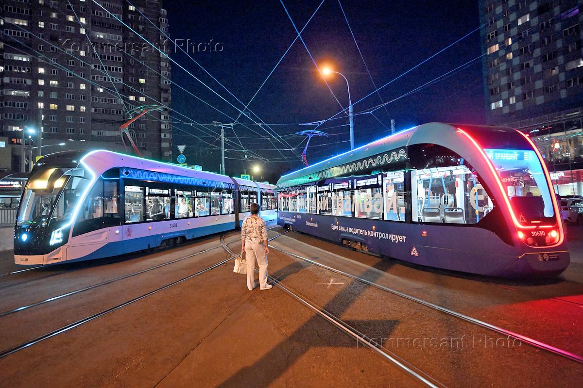 Genre photography. The first driverless tram on the route "Strogino - Shchukinskaya".