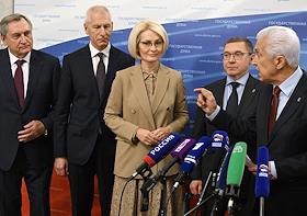 Press scrum following the meeting of the faction of the United Russia party in the State Duma of…