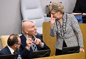 A plenary session of the State Duma of Russia. From right to left: Tatyana Larionova, member of the…