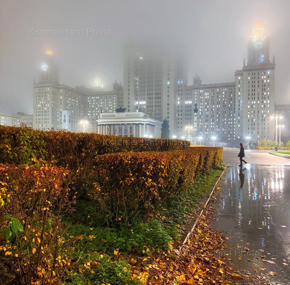 Genre photography. Autumn in the city. Main building of the Lomonosov Moscow State University (MSU).