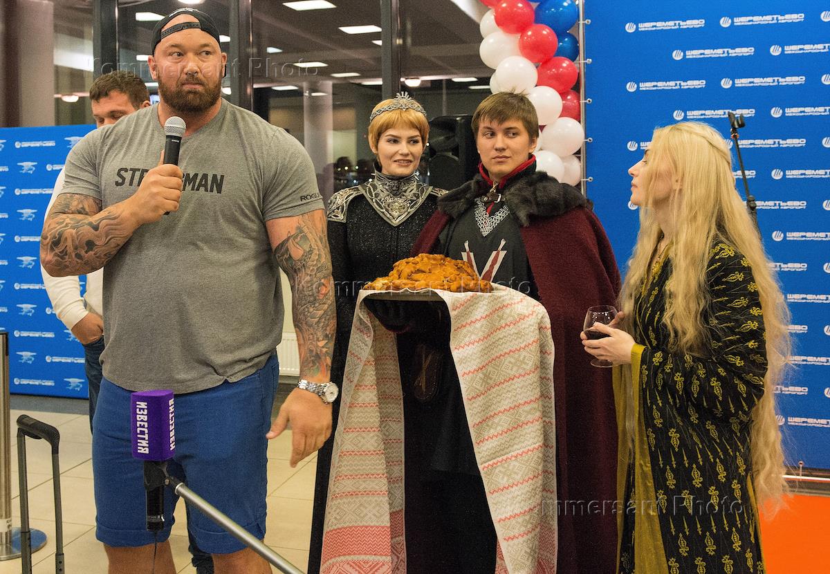 Спортсмен, актер сериала "Игра Престолов" Хафтор Бьернссон (лева) во время автограф-сессии в…