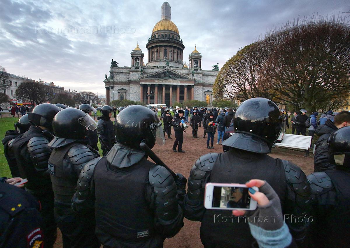 Сотрудники полиции во время акции протеста на Исаакиевской площади.
