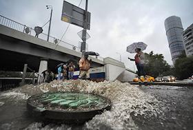 Жанровая фотография. Ливни в городе. Наводнение в районе Сельскохозяйственной улицы, вызванное…