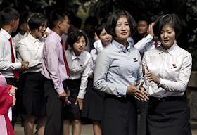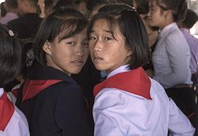 Женщины Северной Кореи. Школьницы в традиционной форме.
