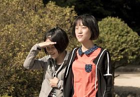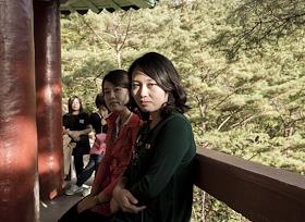 Женщины Северной Кореи. Девочки отдыхают рядом с Мемориальным кладбищем революционеров.