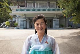 Женщины Северной Кореи. Экскурсовод перед Музеем подарков лидерам КНДР, или Международной выставкой…