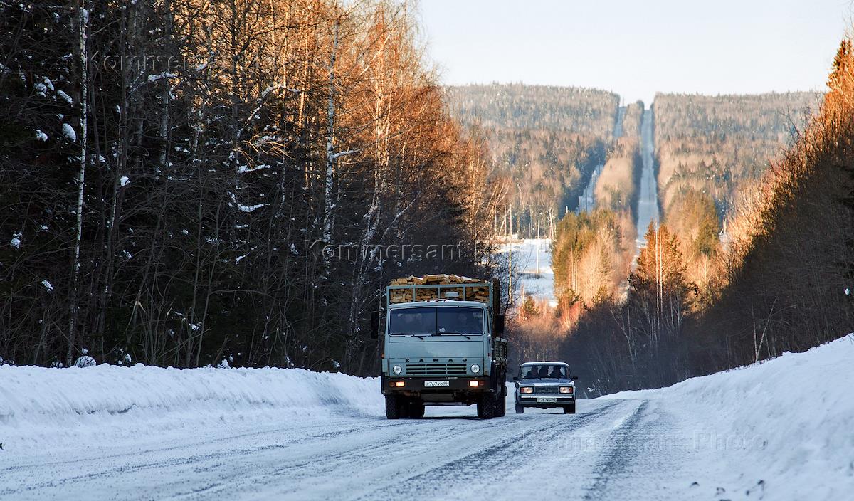 Виды села Серебрянка. Зимняя автотрасса среди лесного массива вблизи села.