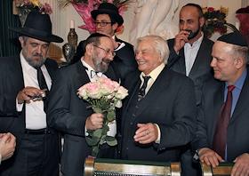 Раввин Адольф Шаевич (второй слева) и режиссер, художественный руководитель театра "На Таганке" Юрий…