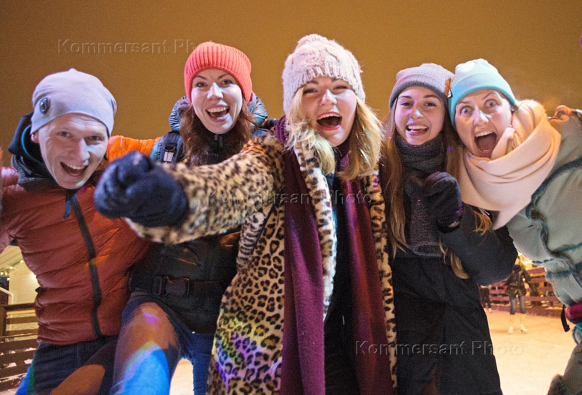 Церемония открытия стрит-арт катка в Парке Горького. Отдыхающие во время церемонии открытия.