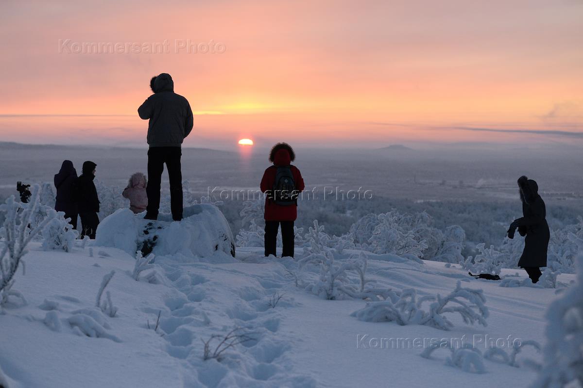 Ежегодная акция "Первый рассвет". Жители Мурманска наблюдают за восходом солнца после полярной ночи.